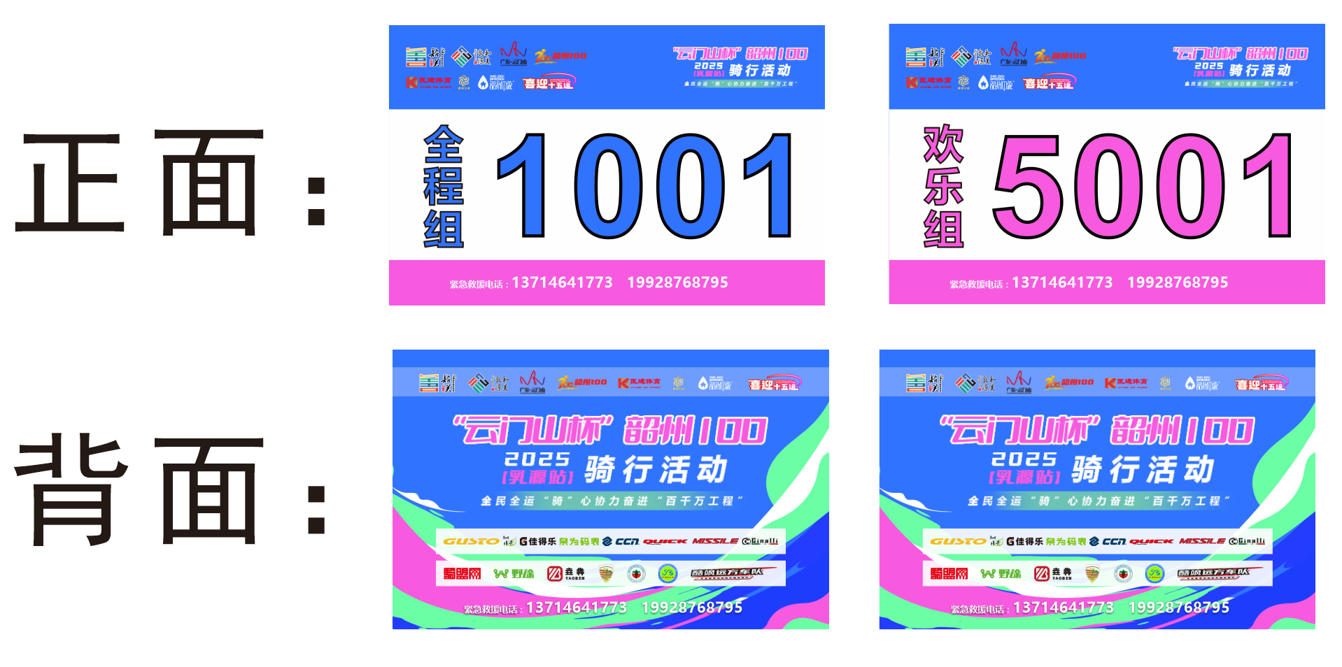 选手号牌上有紧急救援电话,方便车友有需要时拨打。